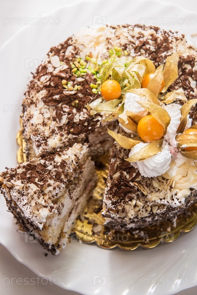 Торт с грецкими орехами и физалисом
