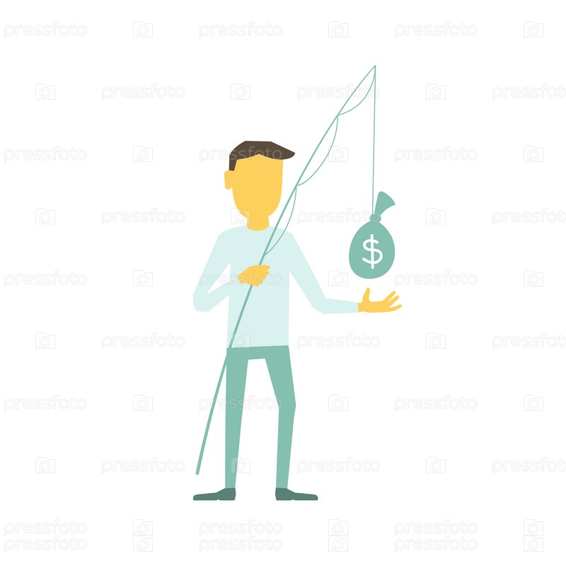 Бизнесмен с удочкой поймал мешок с деньгами