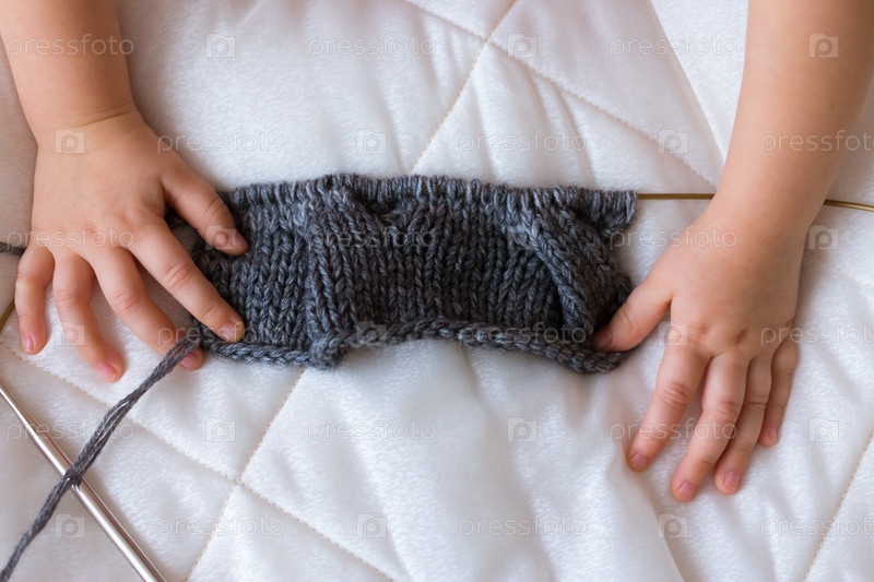 Маленький ребенок с недовязанным шарфом