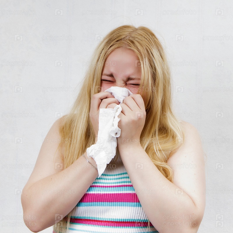Девушка сморкается в платок