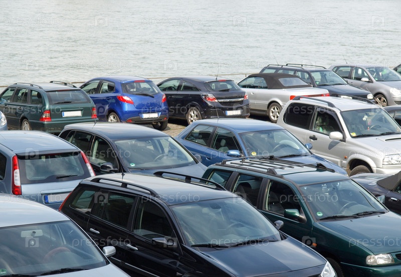 Автомобильная стоянка на берегу реки