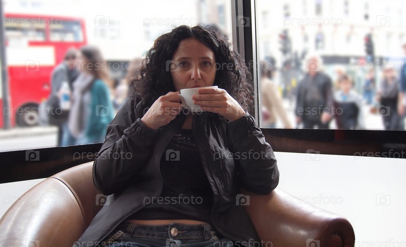 Молодая женщина пьет чай в кафе