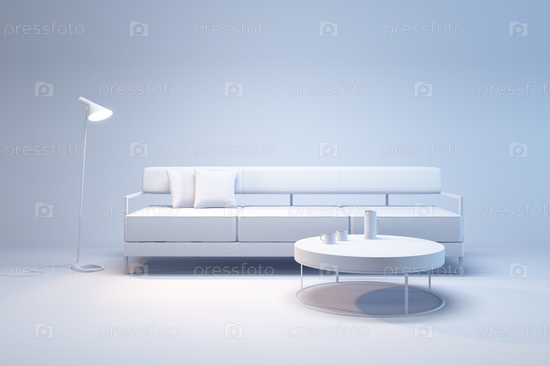 Гостиная, интерьер в стиле минимализма, 3D-визуализация