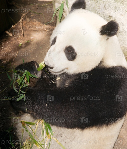Гигантская панда ест бамбук