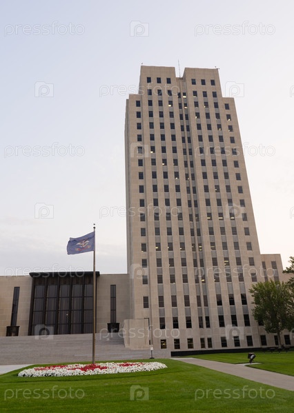 Государственный флаг Северной Дакоты и Капитолий Бисмарка