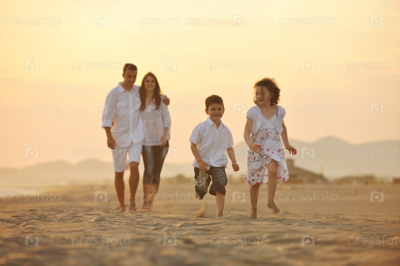Счастливая семья на пляже