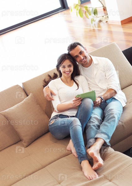 Пара на диване с планшетом