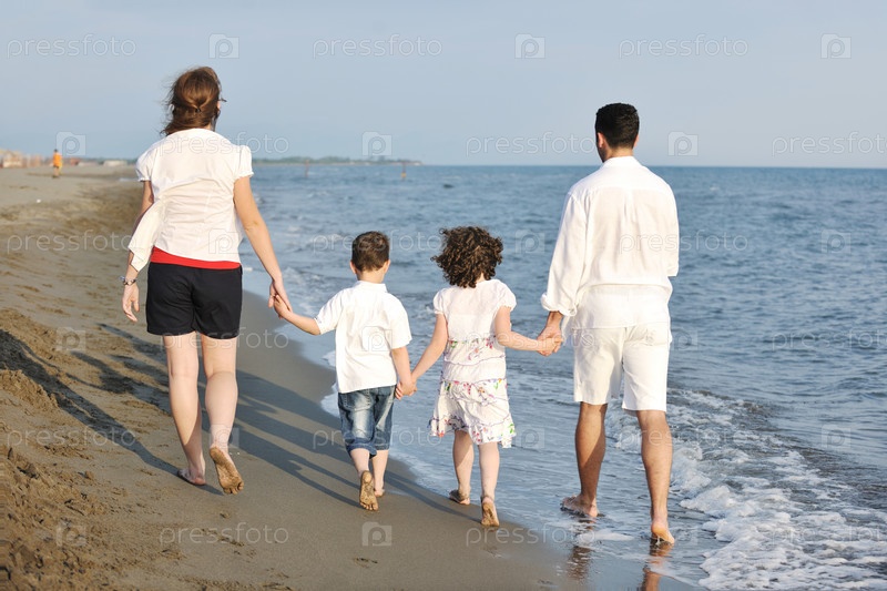 Счастливая семья на пляже