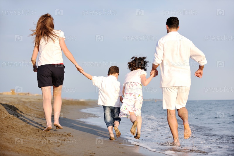 Счастливая семья на пляже