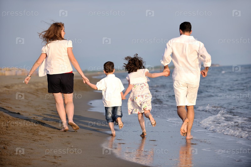 Счастливая семья на пляже