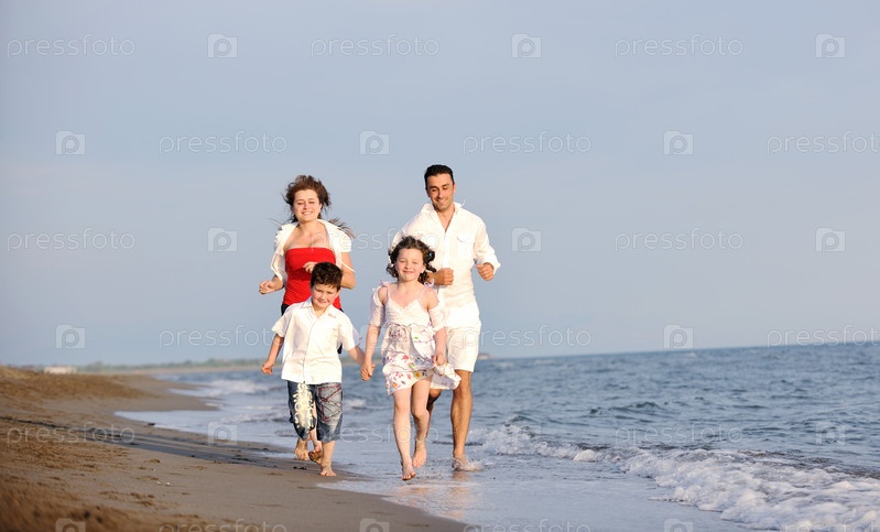 Счастливая семья на пляже