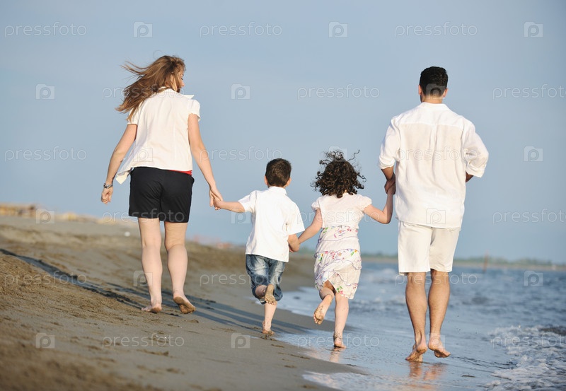Счастливая семья на пляже