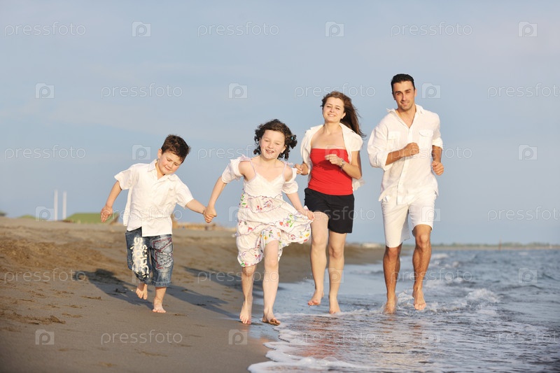 Счастливая семья на пляже