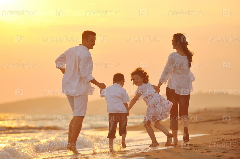 Счастливая семья на пляже