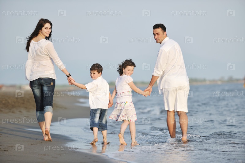 Счастливая семья на пляже