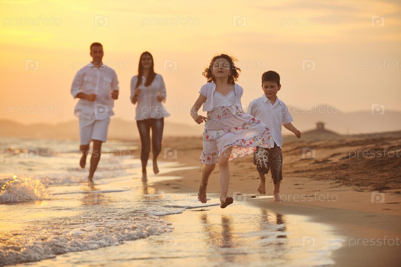 Счастливая семья на пляже