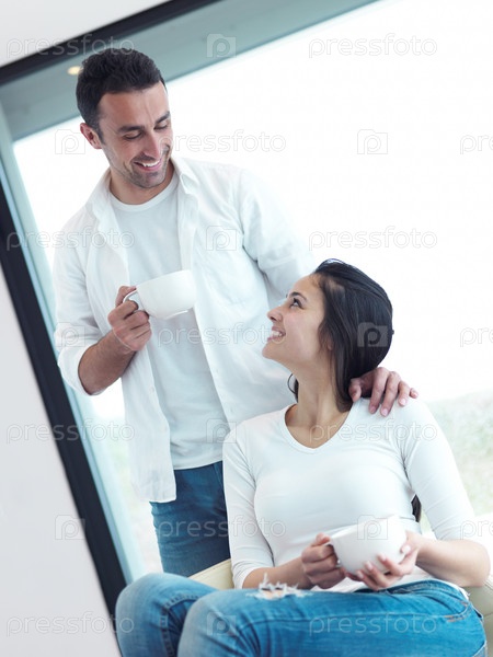 Пара с чашечками кофе