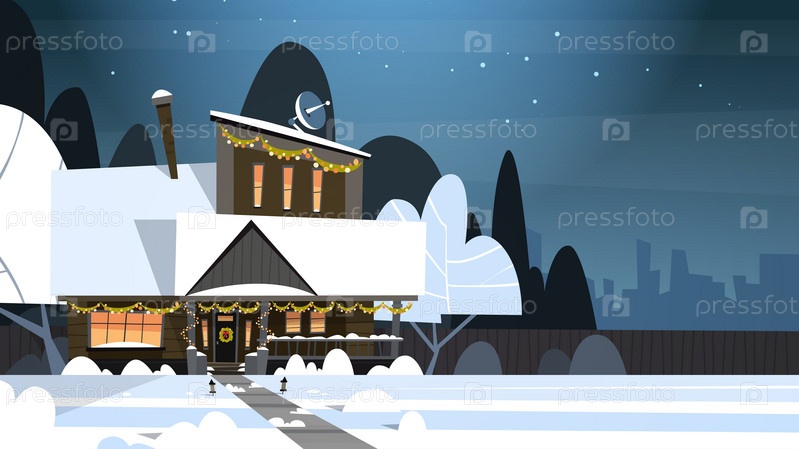 Пригород зимой перед праздником