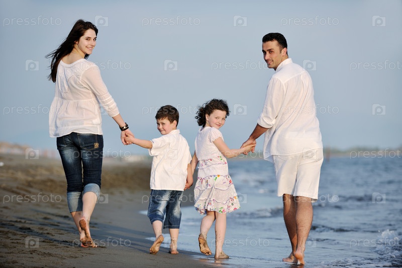Счастливая семья на пляже