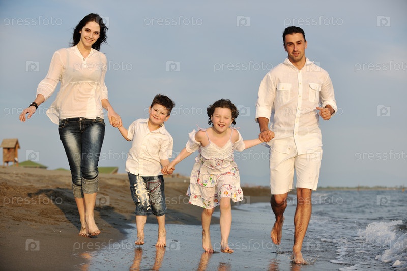 Счастливая семья на пляже