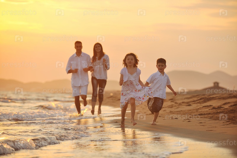 Счастливая семья на пляже