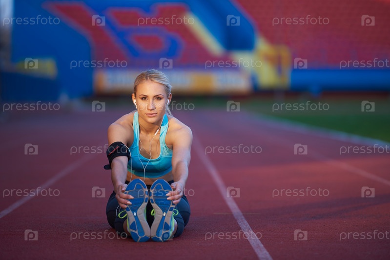 Спортсменка растягивается на стадионе