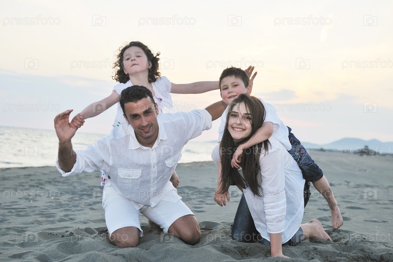 Счастливая семья на пляже