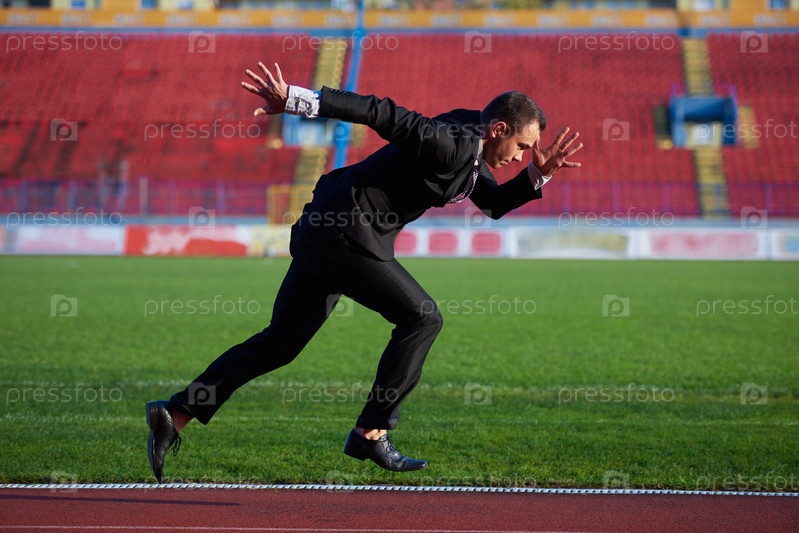 Бизнесмен бежит на стадионе