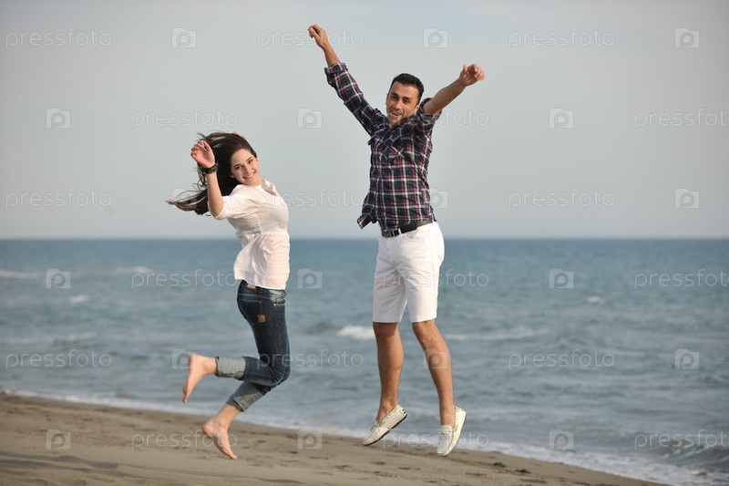 Счастливая молодая пара на пляже