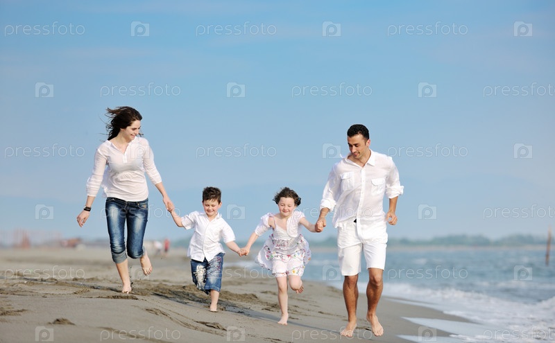 Счастливая семья на пляже