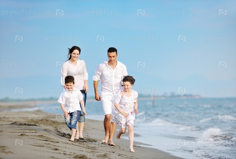 Счастливая семья на пляже