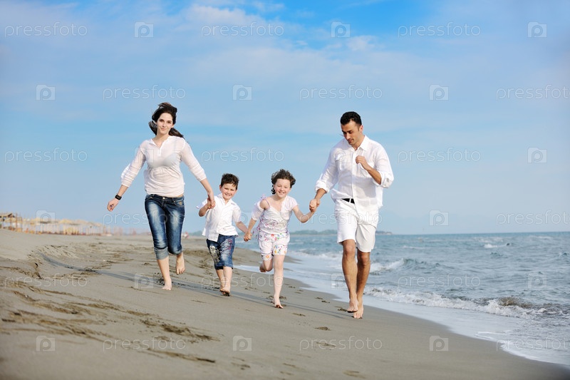 Счастливая семья на пляже