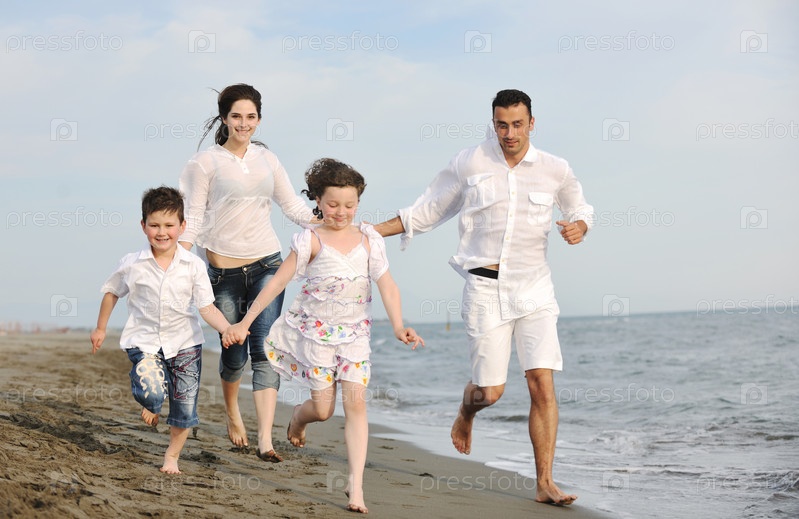 Счастливая семья на пляже