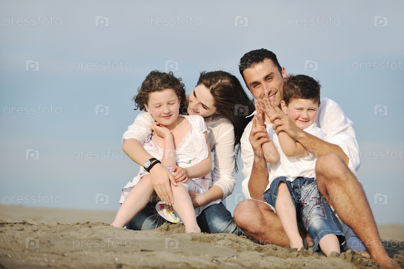 Счастливая семья на пляже