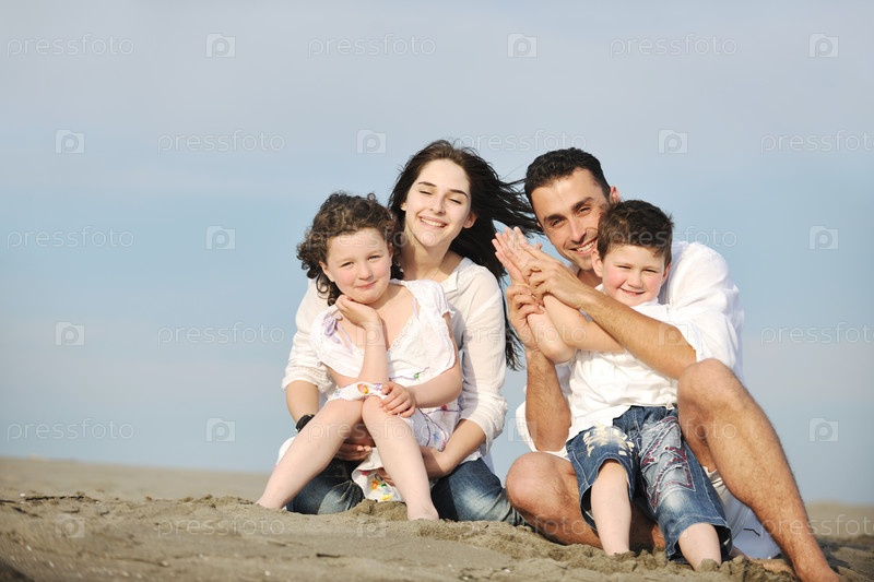 Счастливая семья на пляже