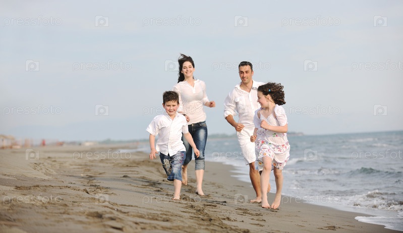 Счастливая семья на пляже
