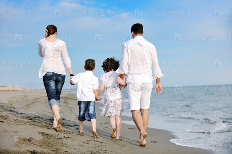 Счастливая семья на пляже