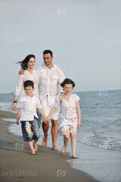 Счастливая семья на пляже