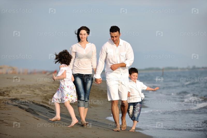 Счастливая семья на пляже