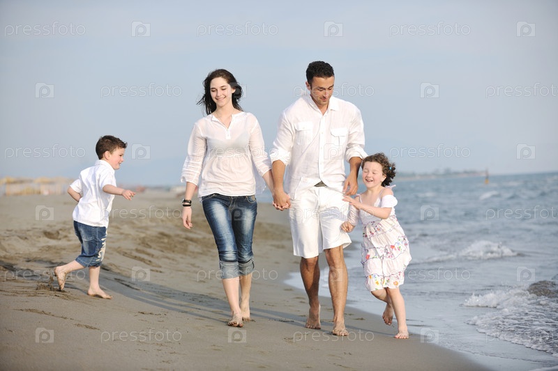 Счастливая семья на пляже