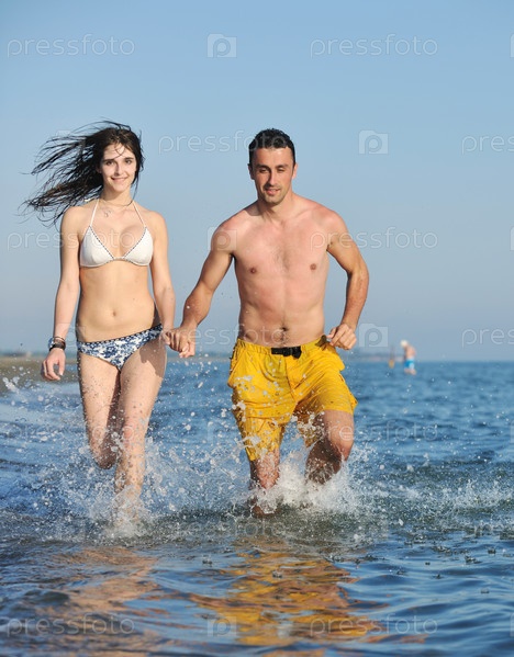 Счастливая пара на пляже