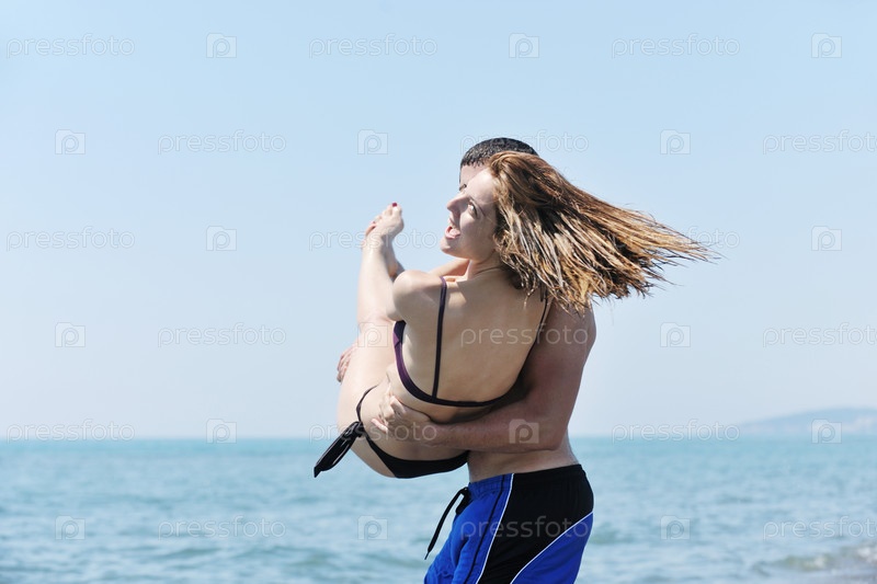 Счастливая пара на пляже