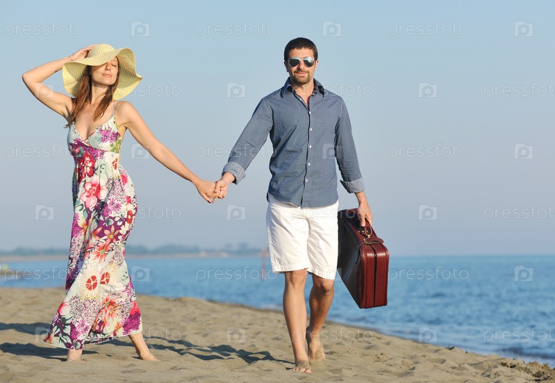 Счастливая пара на пляже