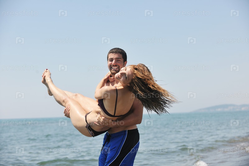 Счастливая пара на пляже