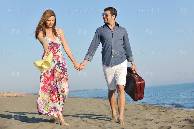 Счастливая пара на пляже