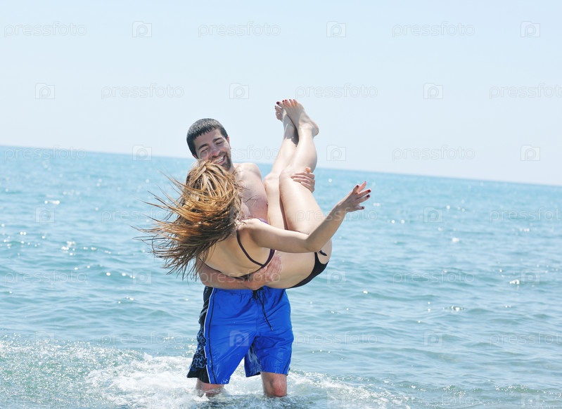 Счастливая пара на пляже