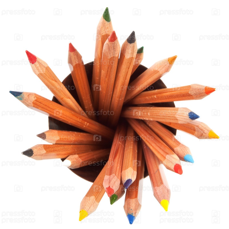 Деревянные цветные карандаши на белом фоне