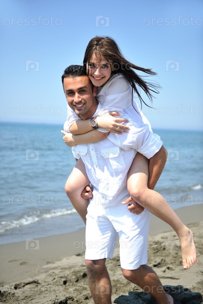 Счастливая пара на пляже