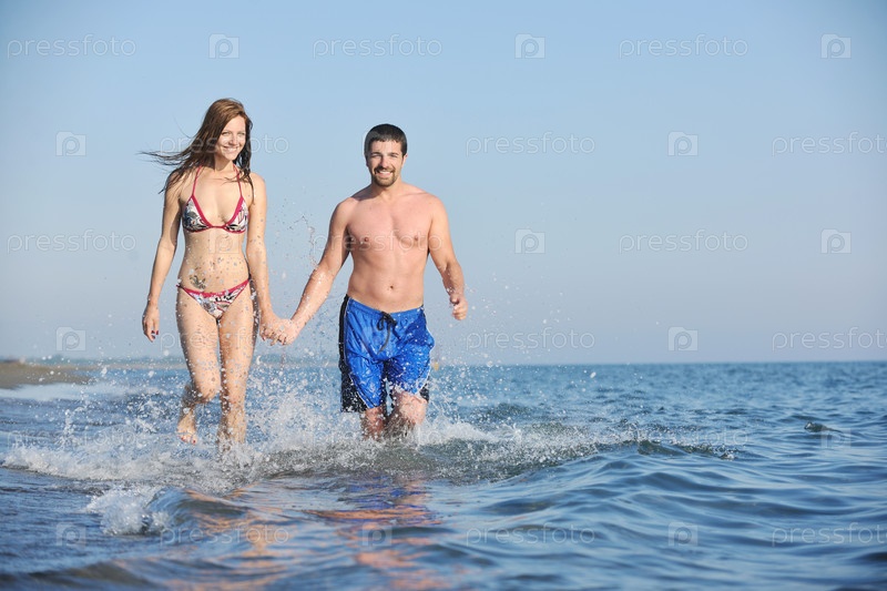 Счастливая пара на пляже