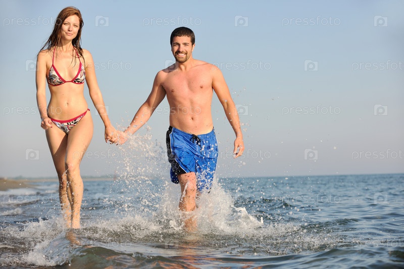 Счастливая пара на пляже